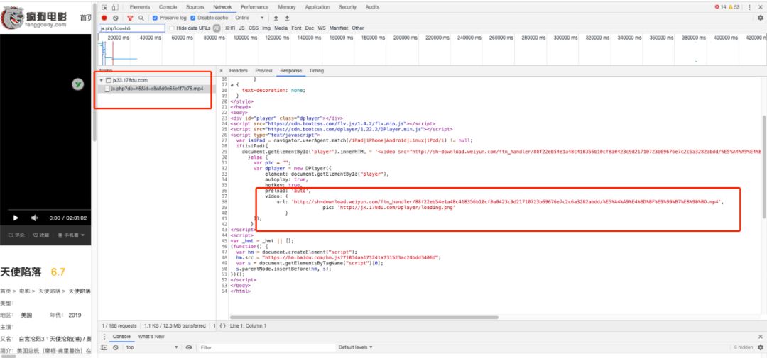 接口参数抓到了就开始拿到我们需要的video路径。我们请求接口的参数返回的是html代码块。